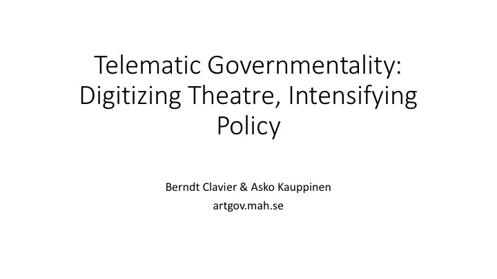 Telematic Governmentality: Digitising Theatre, Intensifying Policy