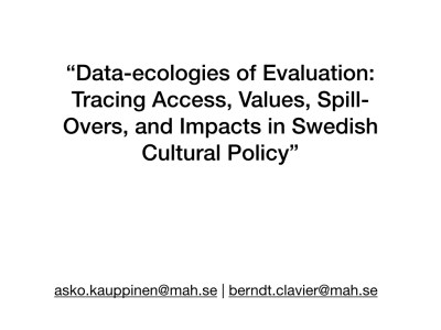 “Data-ecologies of Evaluation: Tracing Access, Values, Spill- Overs, and Impacts in Swedish Cultural Policy”